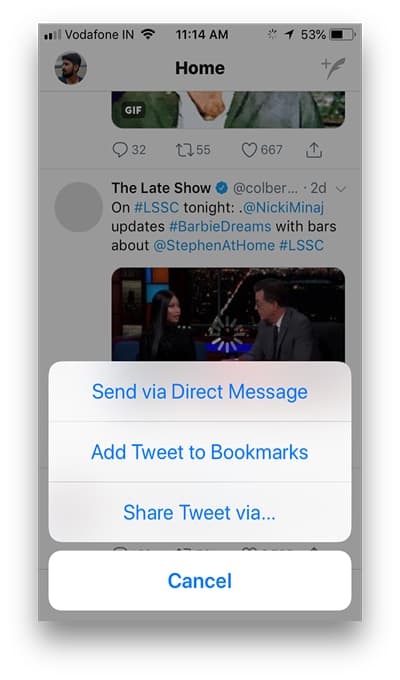 Once finished, open up your Twitter app and find a video that you desire to download to your iPhone. Now, Press the Share button on the Video and choose ‘Share Tweet via.’ You can see this button next to the favorites button.