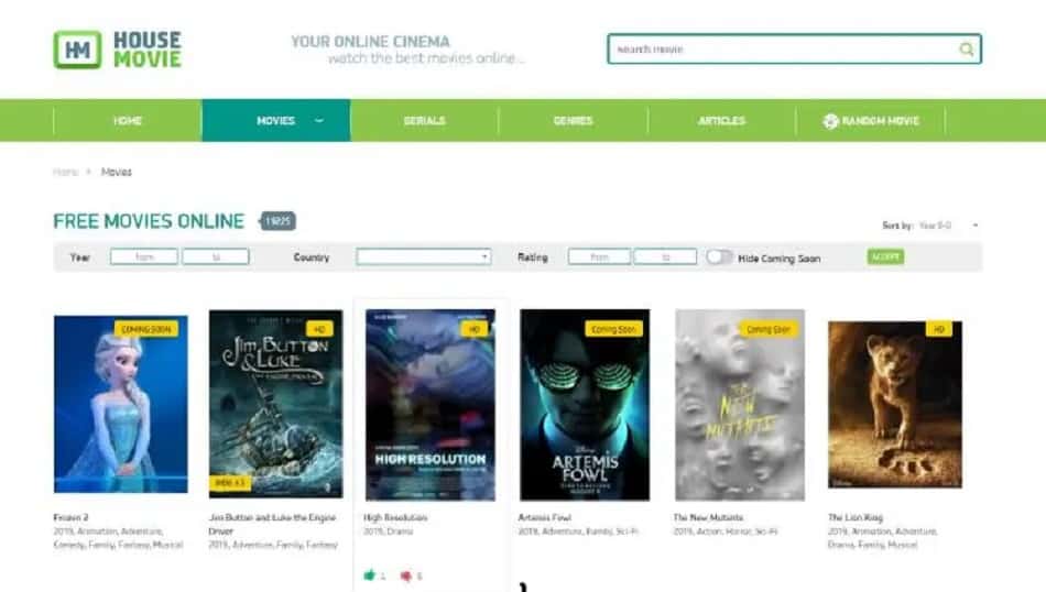 The structure of the HouseMovie is straightforward. According to the release date, the site sorted the movies and TV shows, but the users can sort them alphabetically or by rating. As well as by genre, one can also search the sites.