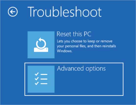 • Here, In the boot recovery menu, select Troubleshoot > Advanced options > Startup Settings > Restart.