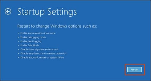• Choose Troubleshoot > Advanced options > Startup Settings > Restart.