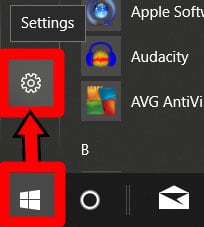 • First, Open the start menu and click Settings. It is the gear-shaped icon just above the power button.