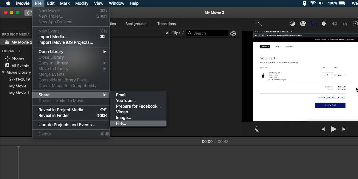 The stock video player on macOS is QuickTime, plus it’s one of the least popular apps that Apple has developed. Such said, up until Sierra, it had one saving grace; it could convert a MOV File to MP4 file. Such feature is gone now, so if you are running a macOS version that is Sierra or later, you don’t have a simple way to convert a MOV File to MP4. You’re going to have to use iMovie. This comes pre-installed on most recent macOS versions, so you should already have it on your system. Unluckily, it isn’t elementary to use so much so that it might be enough to send you looking for an alternative. Hither’s how you can use iMovie to convert a MOV File to MP4.