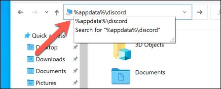 1. Start by opening File Explorer and selecting the navigation bar at its uppermost position, as seen in the following screenshots. Next, enter the Enter key to switch directories by typing AppData percent Discord into the navigation bar.