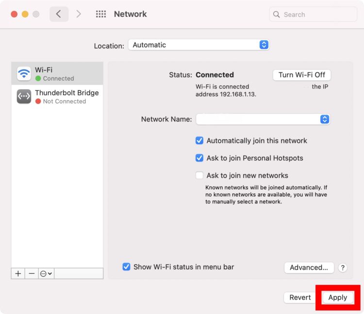 10. At last, tap on Apply. Your modifications won’t go into effect until you tap Apply in the Network window.