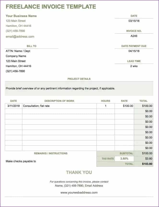 The next template from Smartsheet is quite an interesting one. This is usable by freelancers who work on an hourly basis. The template provides columns for hours and rates besides description and date. Like other Sheet templates, every row’s total amount is calculated automatically depending on the hours spent working. It even offers a row to add a tax to the final amount.