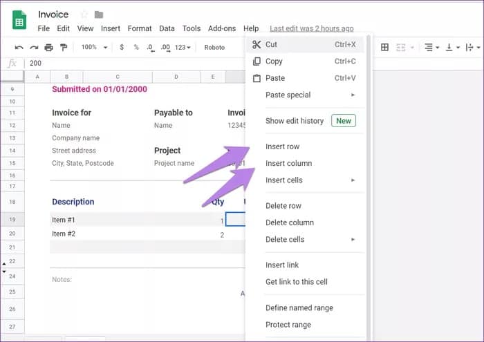 Afterward, click on the first row to select it—right-tap on it and press Delete row. Likewise, scroll down to the bottom of the invoice & delete the last row. Now your template is ready. You can modify and send the template.