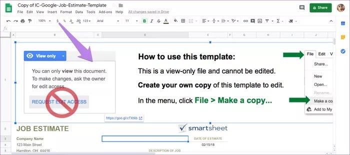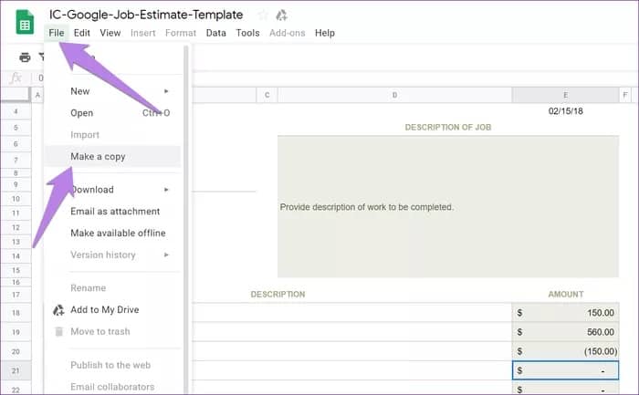 To use any of these templates, open it from the provided given link. When it opens in Google Sheets, tap on File > Make a copy. You’ll be asked to rename & select the storage location.