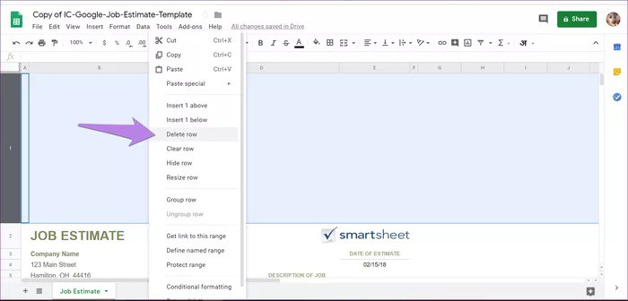 When the copied version opens in Sheets, tap on the how-to image at the top (if available) then delete it.
