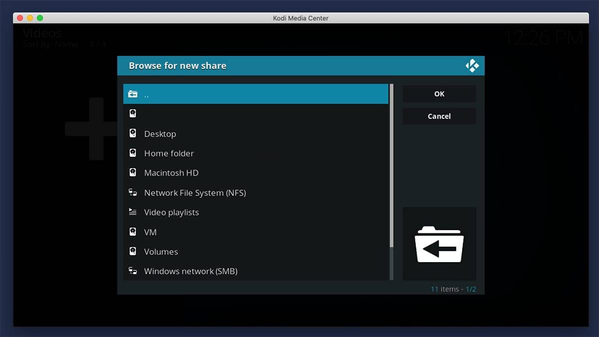 5. To Scroll to the folder containing your movies, use the ‘Browse’ button. Select “OK to confirm the route to be analyzed by Kodi afterward.