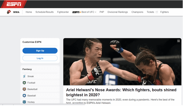 You saw that coming, right? ESPN is undoubtedly one of the most famous names when it comes to the Sports category. This MMA streaming platform lets you enjoy hundreds of games, including UFC Fight Nights and several MMA events. Most of the streams are available for free, and For some of them, you could sign up for or buy a subscription model from your cable provider on the official website.