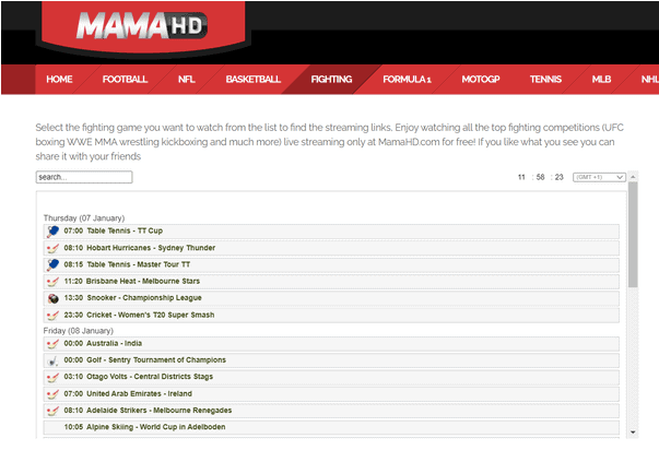 MamaHD.org is another excellent MMA Streaming platform for free sports matches and events, based on some users’ feedback. Compared with other MMA Streaming websites, you can view the content in high quality, and Mama HD lets you connect with like-minded people, and MMA fans while watching the game.