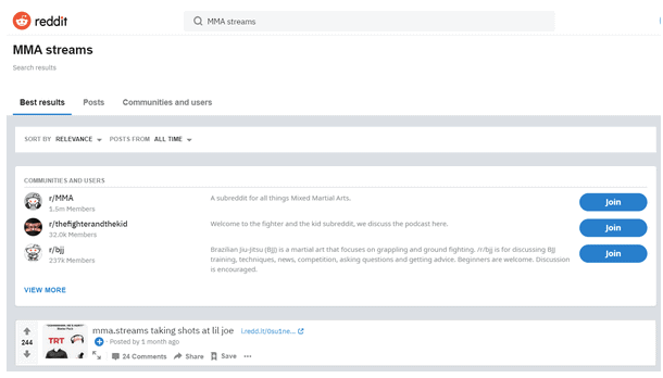 You must be thinking why a social news platform is included in Best MMA Streaming Sites. As well, you might not know, but Reddit can help you access MMA and other sports streaming quite easily. Numerous sports enthusiasts place links about their sports on which MMA links are shared too. Thus, there is a high probability that multiple sites that stream MMA might share their link on Reddit to maximize their reach.