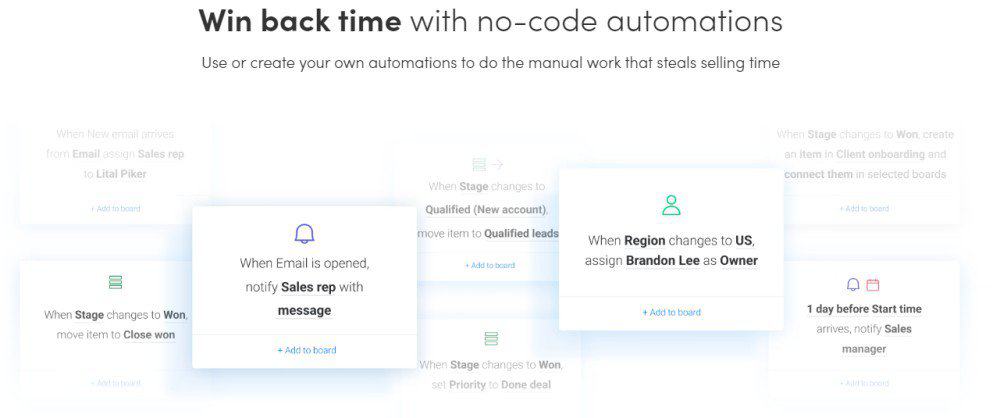 Monday.com Sales CRM has a well-known user interface and code-free customization’s.