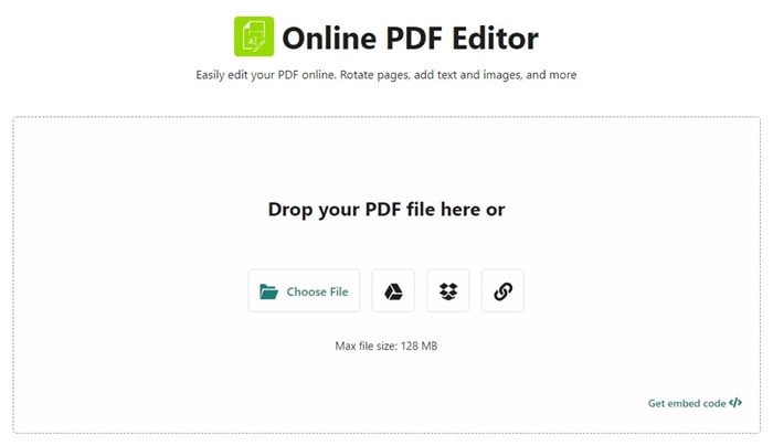 Although AvePDF is not a well-known PDF editor, it is still worth using. Your PDF files can be uploaded via Link, Dropbox, or Google Drive. A maximum of 128MB can be uploaded as a PDF.