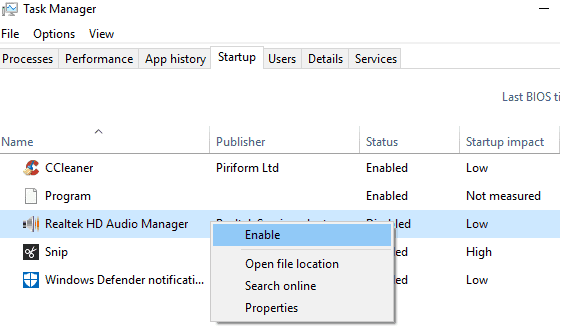 2) Enable the startup in Task Manager