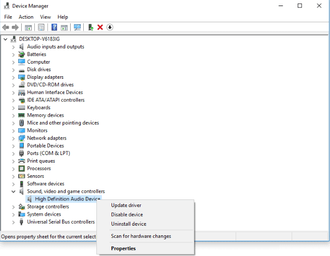 - Right-click on Realtek High Definition Audio and tap on Update driver from the drop-down menu.
