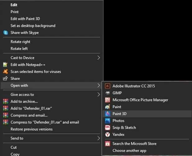1. The image can either be opened by right-clicking on it and selecting Open Within Paint or by clicking File, then Open in the Paint top menu.