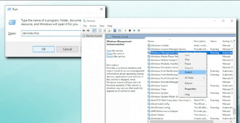 As well, After restarting your computer can’t fix the issue, try to redesign the Windows Management Instrumentation file.