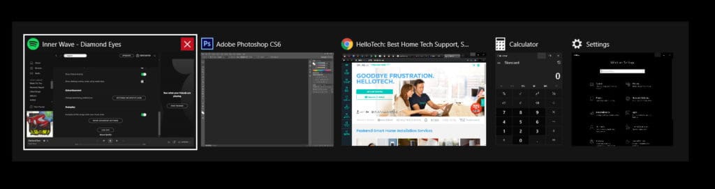 - -Alt + Tab is to switch between applications. In case you have more than two programs running, hold down the Alt button, then press the Tab button. So, This will open up the Task Switcher window. Well, From here, you can navigate between apps by pressing the Tab button. Even You can close apps by clicking the red X in the upper-right corner of each app.
